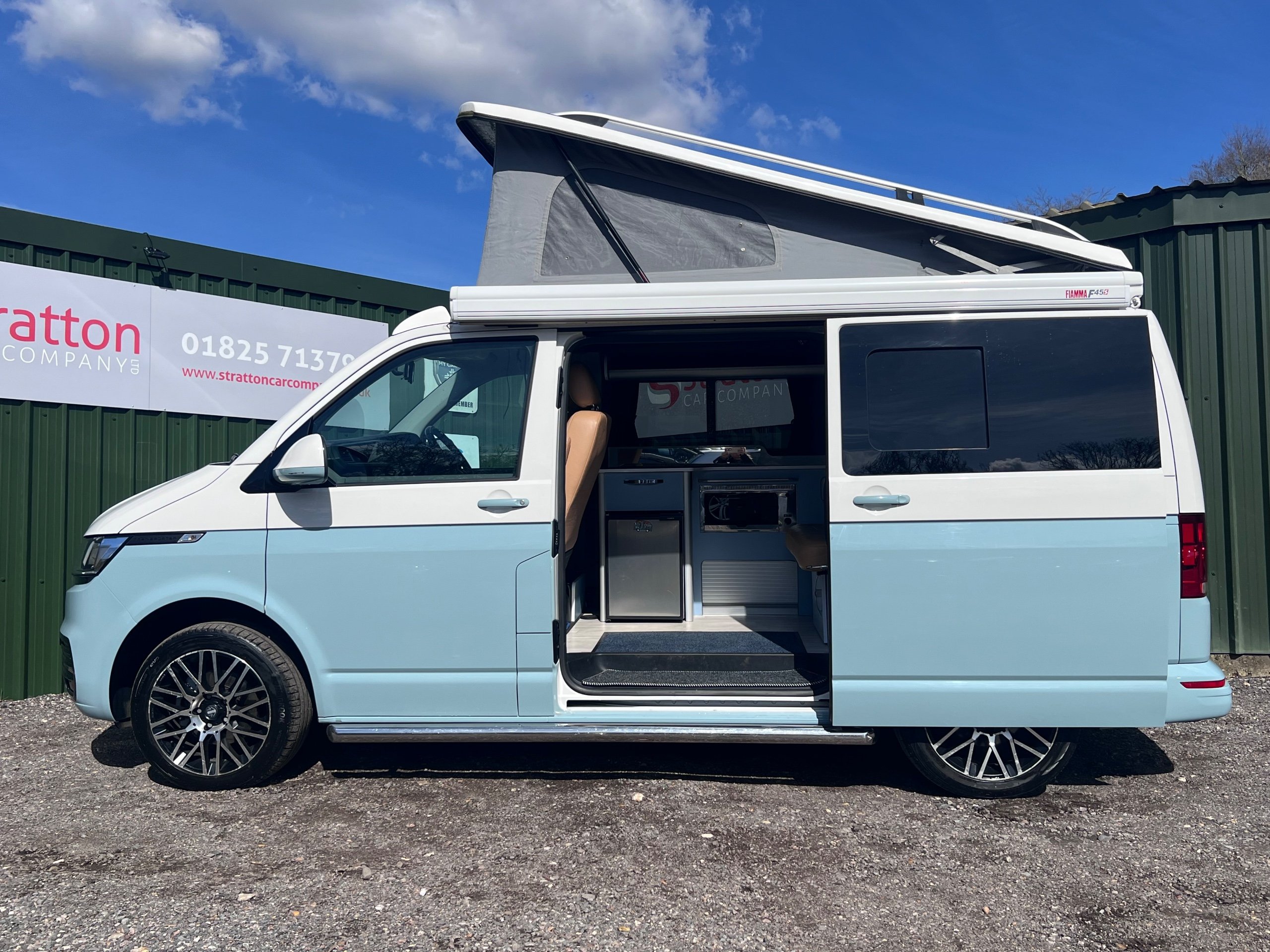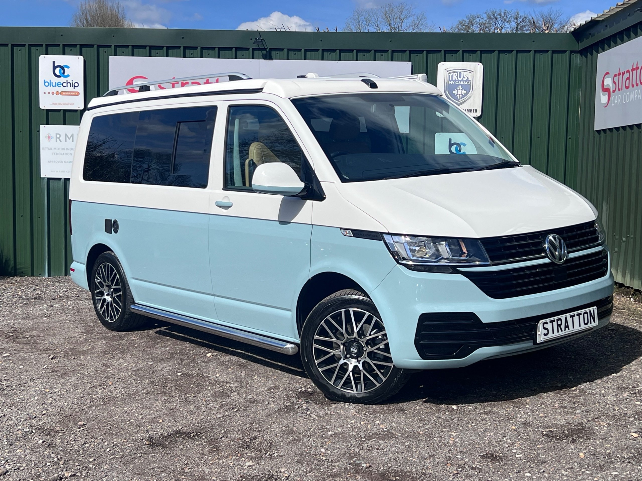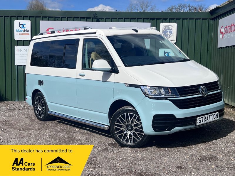 Stratton Car Company are excited to offer this Stunning 2021/71 Volkswagen TransporterT6.1 2.0 TDi 150 BHP Bluemotion Euro 6 Startline /Business Pack Automatic Campervan, Benefiting from a Full Service History Comprising of a Pdi + 4 service stamps last serviced at 32527 miles, as part of the sale we will carry out an oil and filter service. The Wheels are currently being professionally Refurbished. This vehicle has the perfect specification comprising of the following; Full Leather interior, Air Conditioning, Factory Radio/CD Player, Automatic Gearbox, Electric Windows, Electric power folding Mirrors, Cruise Control, Multi Airbags, Detachable tow bar, 18" Diamond Cut Alloys, 4 Berth pop up roof bed/Rock and Roll bed, 12v/240v Fridge, Double Gas Hob, External Shower Outlet, Diesel Night Heater, Swivelling Front Chair, Lithium Leisure battery, Truma Semi Flexible Solar Panel, Reversing Camera, Fiamma Awning with outside LED lighting and lots lots more. This vehicle will undergo a complete and meticulous mechanical inspection which has the backing of a 3 month BLUECHIP extendable warranty. We must add at this juncture that the majority of our customers tend to extend to the 12 month all mechanical all electrical warranty at the extremely competitive knocked down price of just £399+ VAT. Full details can be viewed at www.strattoncarcompany.co.uk.The vehicle is in stunning condition which is a real credit to its former owner. Offered for sale by Stratton car Company of Sussex A Family Run Business. -